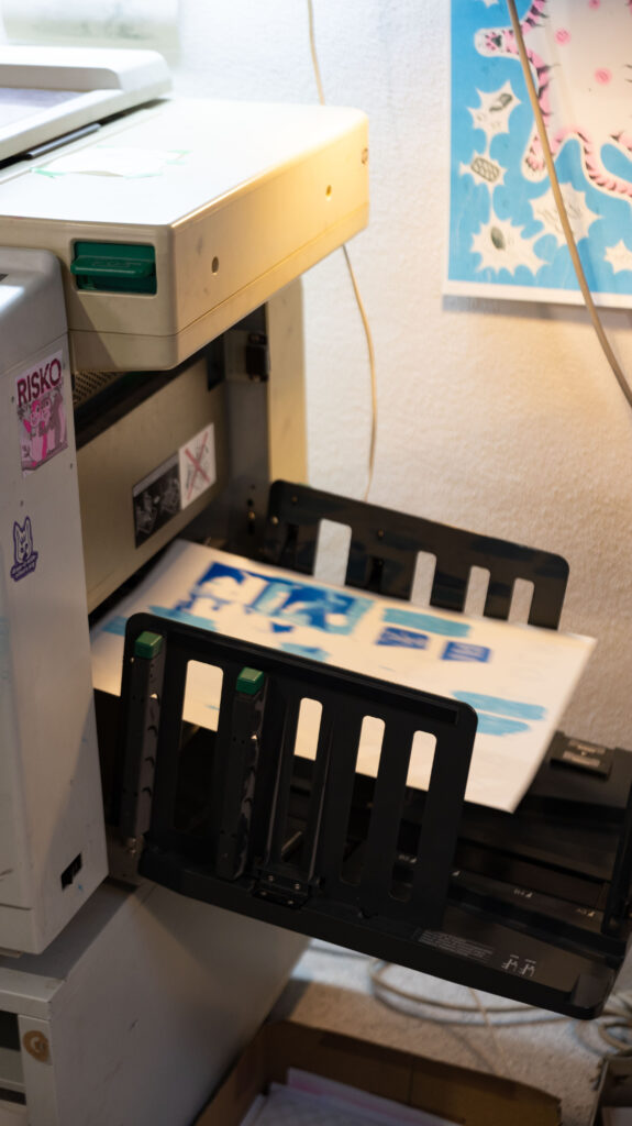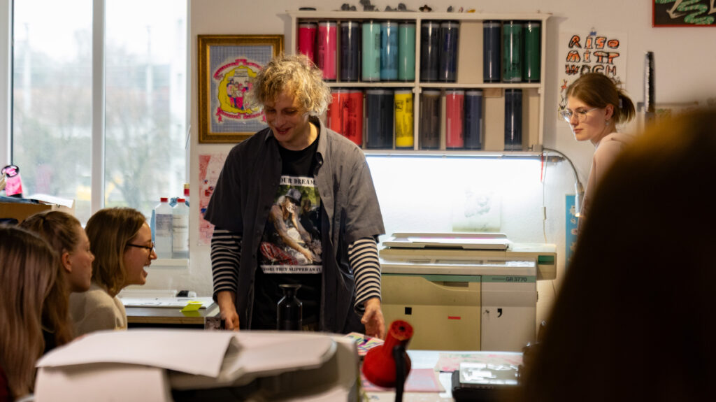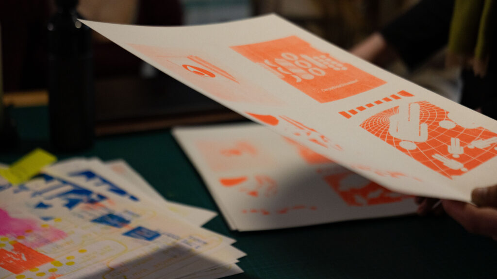 Wer die Newsletterausgabe im Dezember aufmerksam gelesen hat, weiß, dass wir für das Kooperationsprojekt mit dem nextcomic Festival und dem Ars Electronica Center & Future Lab mit Artivive animierte Comics designen. Die Comics werden digital und mit Riso-Technik gedruckt. Für die Produktion unserer tollen Riso-Comics haben wir am 11.12.2025 einen Workshop bei Potato Publishing besucht und erste Comic-Postkarten gedruckt.